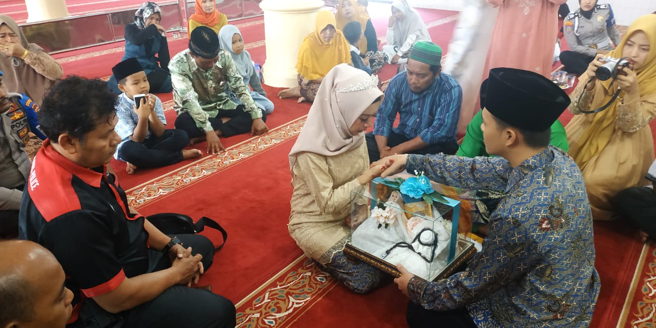 BANGKINANG KOTA, RANAHRIAU.COM - Kamis pagi (8/8/2019) sekira pukul 10.45 wib, telah dilangsungkan pernikahan pasangan Guntur Aji Pangestu (22) dengan Monika Dewi Septiana (20) yang dilangsungkan di Masjid Al-Ikhlas disebelah Mapolres Kampar.