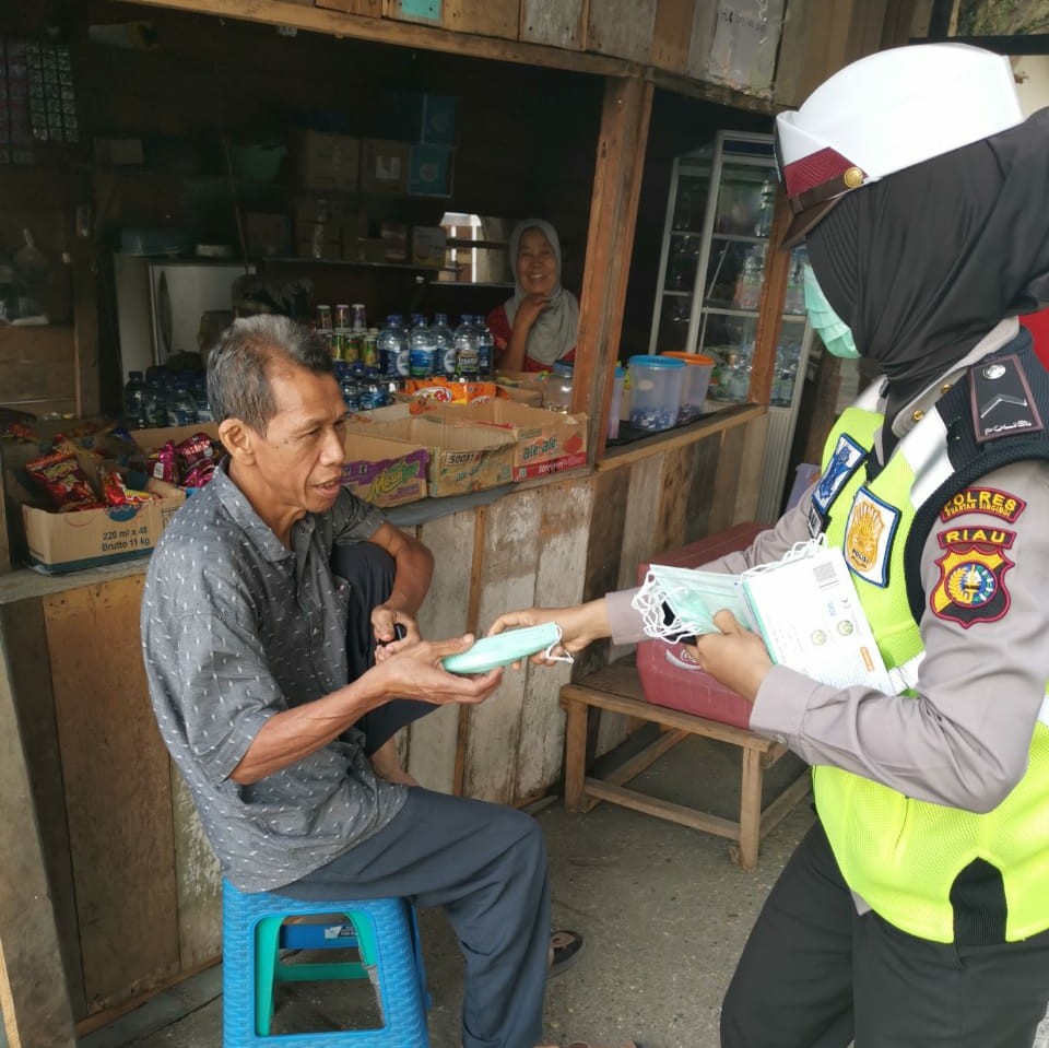 Pembagian masker gratis tersebut dilakukan di empat lokasi yaitu di sekitar lapangan Limuno Teluk Kuantan, Jl proklamsi Teluk Kuantan, Jl. Belibis simpang tugu pelajar dan jl. Jend Achmad yani Teluk Kuantan.
