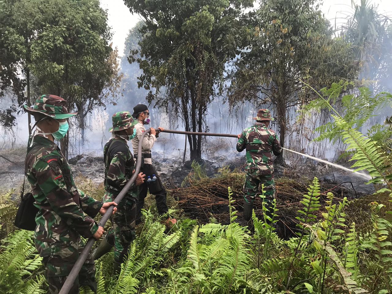 DURI, RANAHRIAU.COM - Selama dua hari berturut-turut kegiatan Pemadaman api dan Pendinginan di TKP > Titik Koordinat 1°15'28", 101°1'40", 12,3m, 327° Karlahut di Cucut RT 04 / RW 03 Desa Buluh Manis Kec. Bathin Solapan Kabupaten Bengkalis berhasil di kendalikan oleh Personil Polsek Mandau yang di bantu Pasukan TNI dari Koramil Mandau Duri.