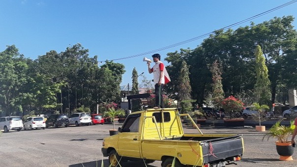 Rahmatullah, walaupun seorang diri, ia tetap menyuarakan aspirasinya di atas mobil pikap miliknya sendiri. “Walaupun yang lain banyak dan berkumpul di Makassar, seharusnya ada juga di Pangkep. Ini tidak ada sama sekali, jadi secara pribadi saya inisatif agar DPRD Pangkep juga mendengar langsung,” ungkapnya.