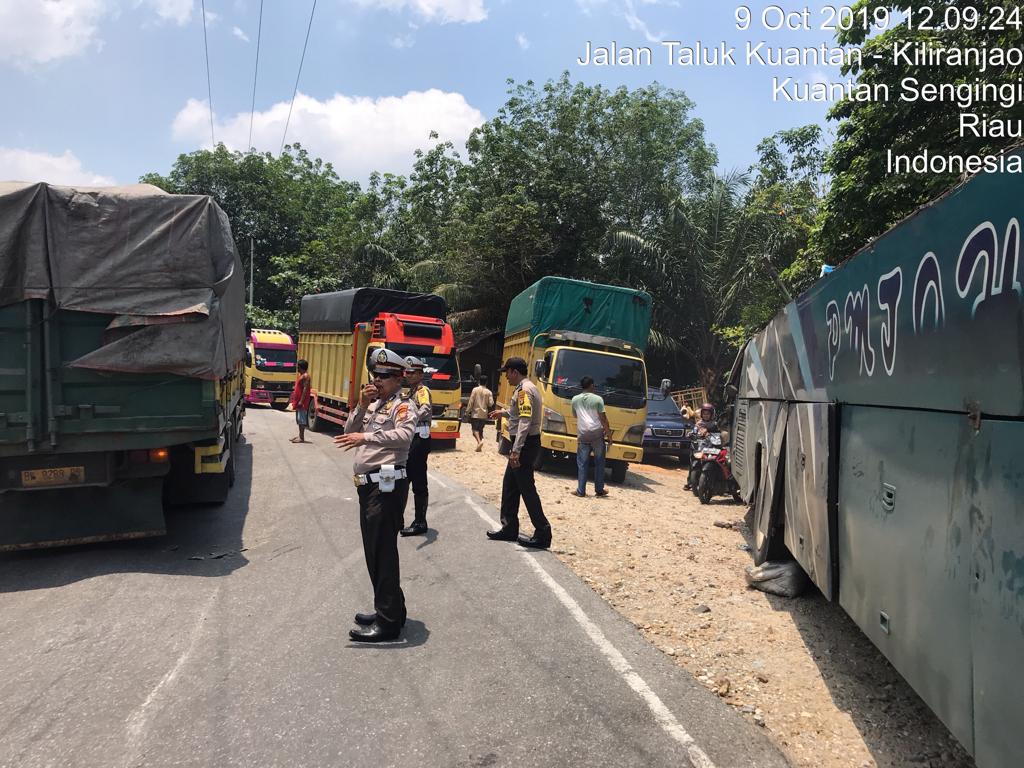 KUANSING, RANAHRIAU.COM - Enam orang tewas dalam kecelakaan maut yang dialami bus PM.TOH di jalan Lintas telukkuantan - kiliranjao, tepatnya di desa kasang kecamatan Kuantan mudik kabupaten Kuantan Singingi, Riau Rabu (9/10/2019) pukul 11.00 WIB.