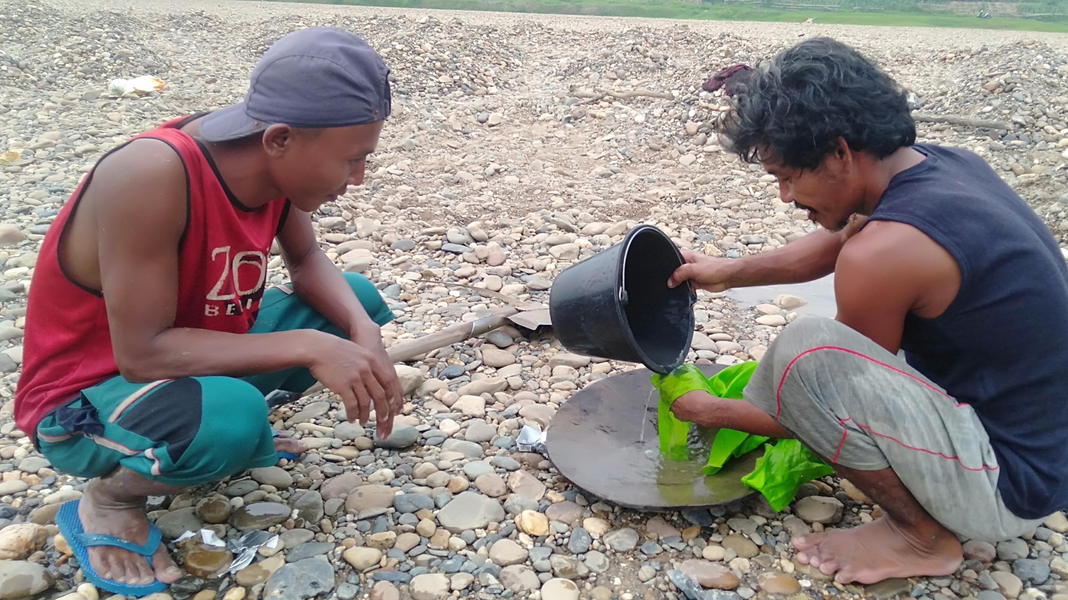 "Ya, beginilah cara kami mencari nafkah untuk memenuhi kebutuhan sehari-hari. Terkadang dapat emas, terkadang zonk saja," ujar Bambang seraya mengeluhkan kehidupannya sebagai seorang pencari barang tambang (emas) dengan alat seadanya, seperti Dulang.