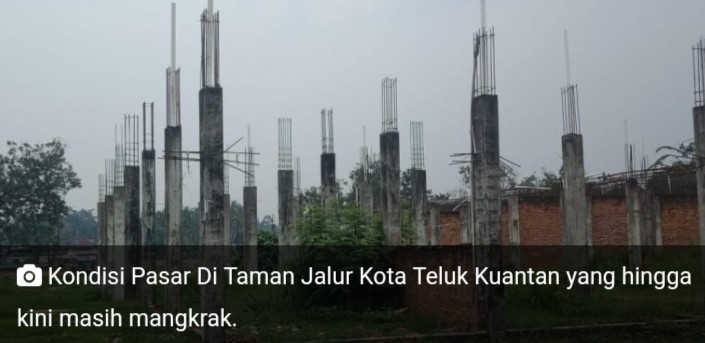 Dia mengakui belum mengetahui nasib kelanjutan Pasar Di Taman jalur Kota Teluk Kuantan yang hingga kini masih mangkrak Tersebut. Ironisnya lagi, kelanjutan pembangunanya juga belum tersentuh rencana pemerintah.