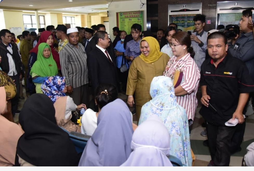 Bupati Bengkalis awalnya mengunjungi ruangan pasien yang sedang cuci darah yang berada di Lantai V RSUD, lalu beliau mengunjungi ruangan salah satu masyarakat bernama Hapordranna Boru Purba yang mengalami sesak nafas dan batuk.