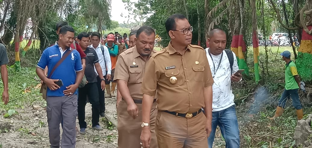 Bupati Rohil H Suyatno AMp meninjau kondisi terkini dari hutan kota yang telah dibersihkan di beberapa bagian, Senin (27/1) siang.