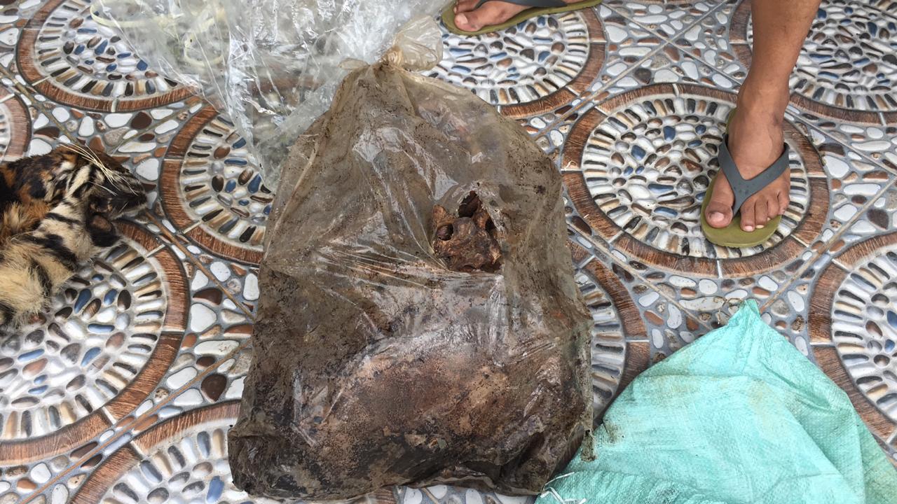 PEKANBARU, RANAHRIAU.COM - 15 FEBRUARI 2020 – Polda Riau kembali mengungkap jaringan perdagangan organ harimau, tiga pelaku yang membawa dan menyimpan bagian tubuh dari Harimau Sumatera (Panthera tigris sumatrea) yang sudah mati. Organ Harimau Sumatera tersebut antara lain 1 (satu) lembar kulit, 4 (empat) taring, dan 1 (satu) karung berisi tulang-belulang Raja Hutan disimpan dalam plastik dan karung. Penangkapan dilakukan, Sabtu, 15 Februari 2020, sekitar pukul 11.00 WIB, di Jalan Arjuna Dusun IV RT/RW 002/091 Kelurahan Candi Rejo, Kecamatan Pasir Penyu, Kabupaten Indragiri Hulu (Inhu), Riau.