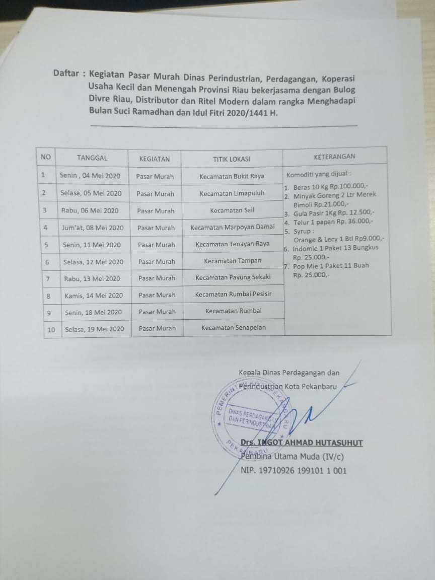 Menanggapi Surat yang beredar terkait Daftar kegiatan pasar murah yang diadakan Disperindag kota Pekanbaru di setiap kecamatan.