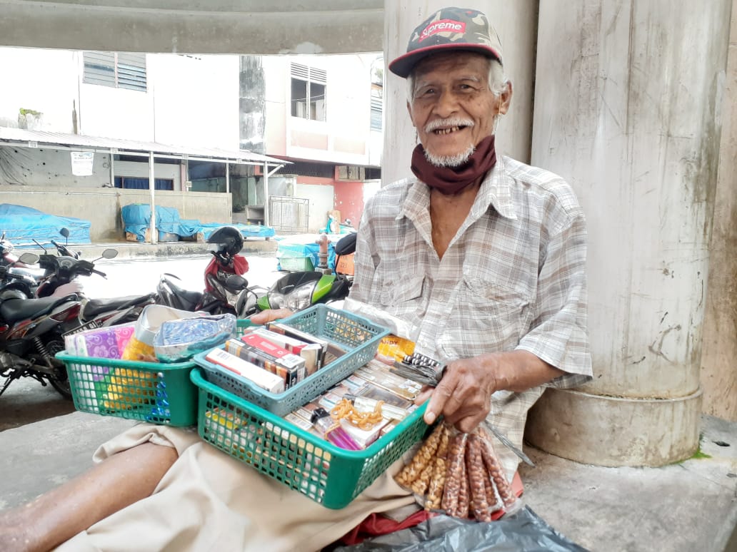PEKANBARU, RANAHRIAU.COM - Pria paruh baya berusia 85 tahun tersebut berprofesi sebagai pedagang asongan di Pasar Kodim. Meski jarak dari rumahnya cukup jauh, ia tak pernah lelah untuk tetap melangkahkan kaki dengan semangat mencari pundi-pundi rupiah.