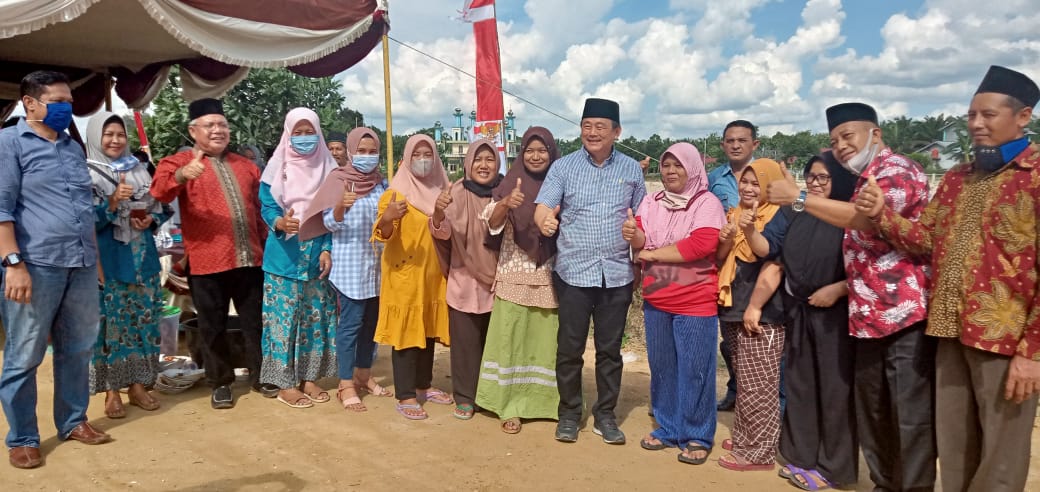 LTD, RANAHRIAU.COM - Pemerintahan desa Bumi Mulya H. Sunyeto, SPd.I dan Ketua PBNU Kuansing, H. Rofingi mengundang bakal calon bupati Kuansing H. Halim pada acara Peluncuran Mainan Embung Terto Mulyo di Desa Bumi Mulya. Senin (17/8/2020) Siang.