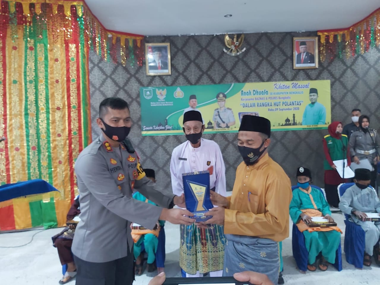 Kapolres Bengkalis membuka kegiatan Sunatan Massal gratis bagi kaum dhuafa sempena HUT Polantas ke-65 bertempat di Kantor Polres Bengkalis, Rabu (9/9/2020). Khitanan massal gratis yang ditaja Polres Bengkalis bekerja sama dengan Baznas ini diikuti sekitar 108 anak yang terdiri dari para pelajar dari keluarga yang kurang mampu.