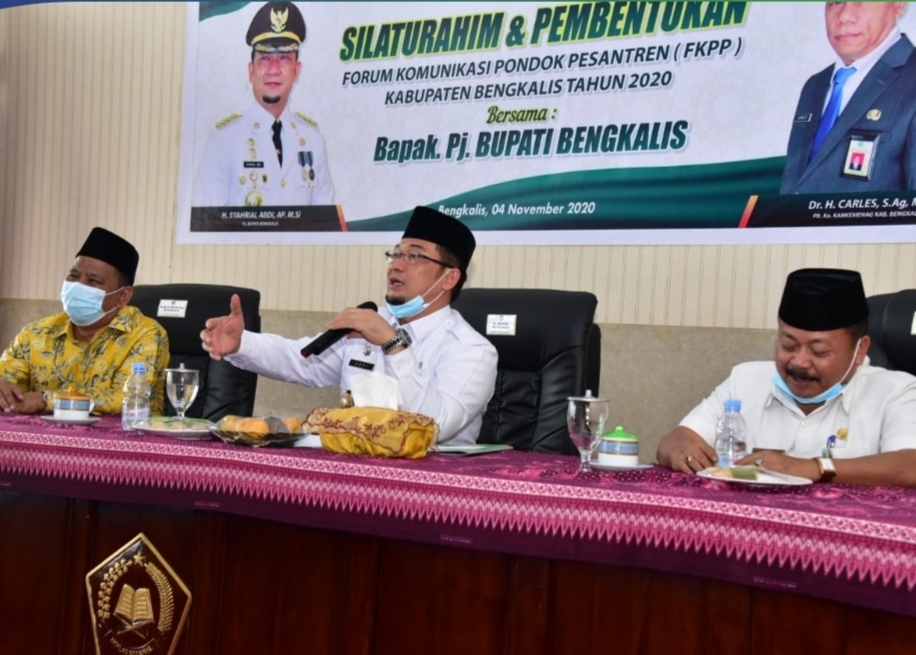 BENGKALIS, RANAHRIAU.COM - Penjabat (Pj) Bupati Bengkalis H Syahrial Abdi menghadiri sekaligus membuka secara resmi silaturahmi dan pembentukan Forum Komunikasi Pondok Pesantren (FKPP) Kabupaten Bengkalis tahun 2020, di Aula Kantor Kementerian Agama (Kemenag) Bengkalis, Rabu (04/11/2020).