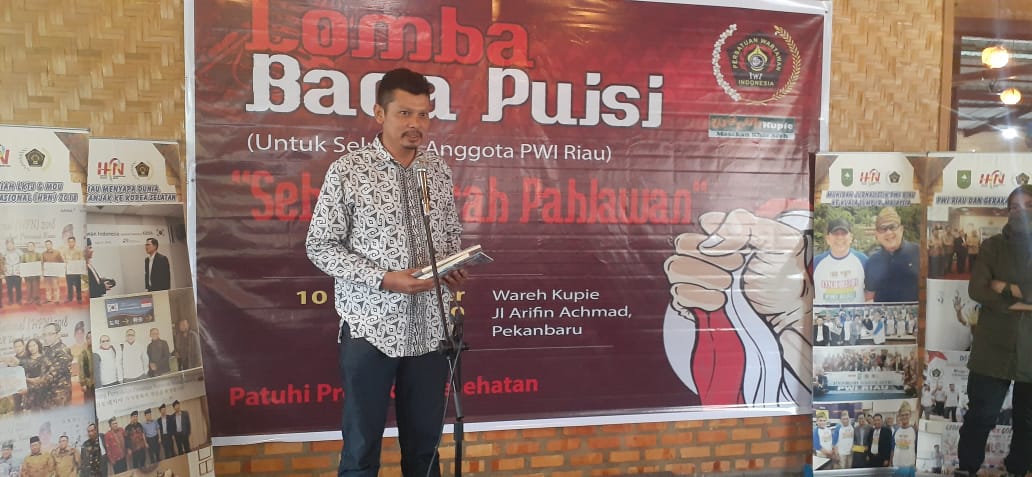 Untuk diketahui, ajang lomba baca puisi dalam rangka Hari Pahlawan yang berlangsung di Wareh Kupie Jalan Arifin Ahmad, Pekanbaru ini diikuti 17 wartawan, khususnya anggota dan pengurus PWI Riau. Sedangkan juri yang dihadirkan juga masih keluarga besar PWI. Mereka adalah H Dheni Kurnia, Kazzaini Ks dan Fakhrunnas MA Jabbar.