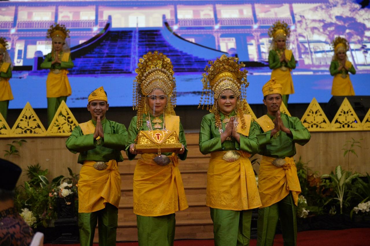 1. Dua dara Melayu menyambut para undangan malam Anugerah Keterbukaan Informasi , KI Riau Awar 2020.