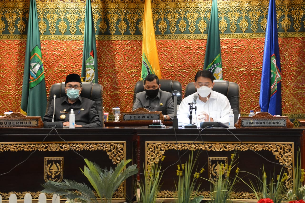 Dewan Perwakilan Rakyat Daerah (DPRD) Provinsi Riau kali ini menggelar Sidang Paripurna dengan agenda penyampaian laporan hasil kerja badan anggaran terhadap rancangan peraturan daerah (Perda) tentang APBD provinsi Riau tahun anggaran 2021 sekaligus persetujuan dewan dan pendapat akhir kepala daerah.