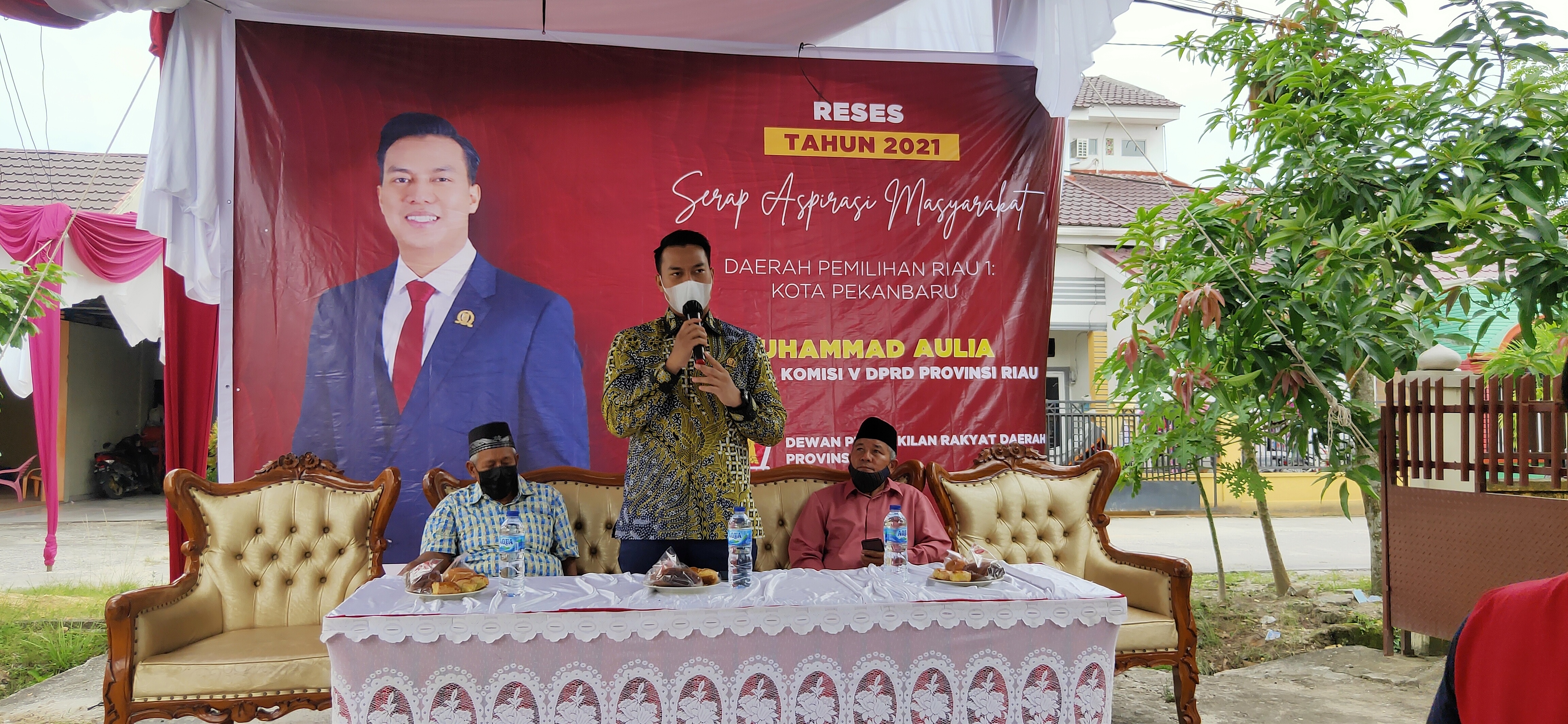 PEKANBARU, RANAHRIAU.COM - Menjemput aspirasi dalam kegiatan reses, Anggota DPRD Riau, Muhammad Aulia sambangi perumahan dwitunggal Arifin RT.05/11 Tangkerang Barat, Marpoyan Damai.