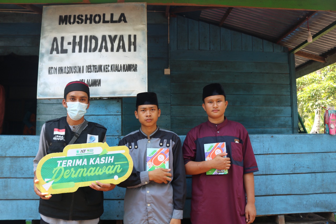 KUALA KAMPAR, RANAHRIAU.COM- Tim Global Wakaf Aksi Cepat Tanggap Riau berkunjung ke Mualaf Suku Akit di Pulau Penyalai, Desa Teluk, Kecamatan Kuala Kampar, Kabupaten Pelalawan, untuk menyalurkan Wakaf Mushaf Al-Quran dan Beras Gratis dari para dermawan yang sudah menyalurkan sebagian hartanya ke ACT Riau, Rabu (22/09/2021).