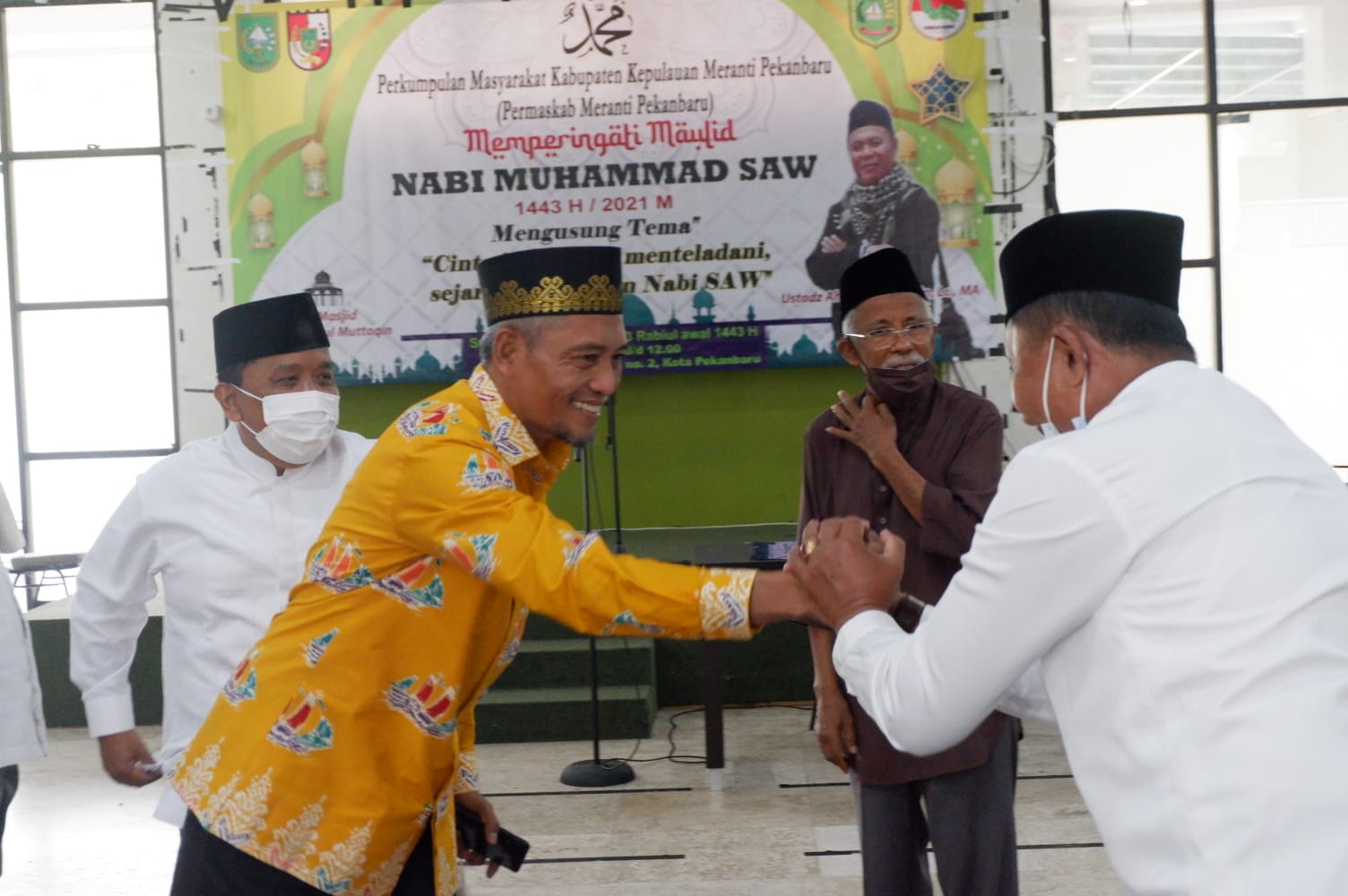 PEKANBARU, RANAHRIAU.COM- Perkumpulan Masyarakat Kabupaten Kepulauan Meranti Pekanbaru gelar kegiatan dalam rangka memperingati Peringatan Hari Besar Islam, Maulidurrasul 1443 H yang diadakan di Aula Masjid Alfalah Darul Muttaqin Pekanbaru, Sabtu (30/10/2021).