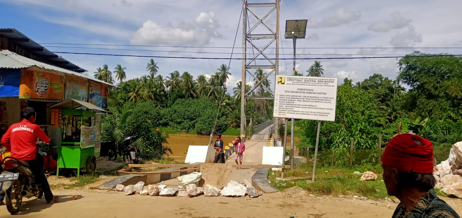 Kendati telah dipasang rambu-rambu sebagai peringatan karena dinilai telah membahayakan keselamatan, namun masyarakat tetap saja berani berlalu lalang berjalan kaki menyeberang sungai kuantan dengan jembatan yang sudah rusak itu.