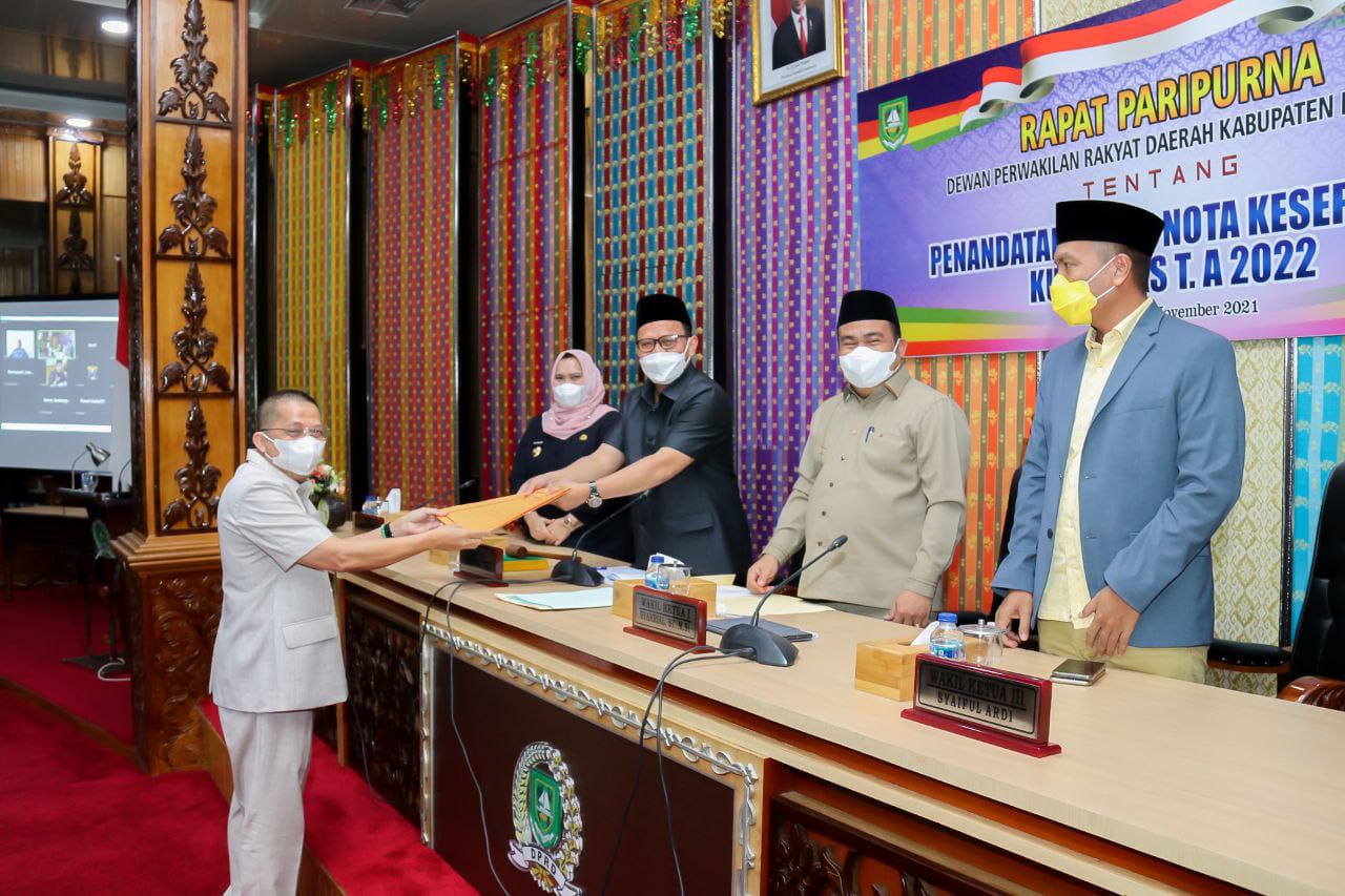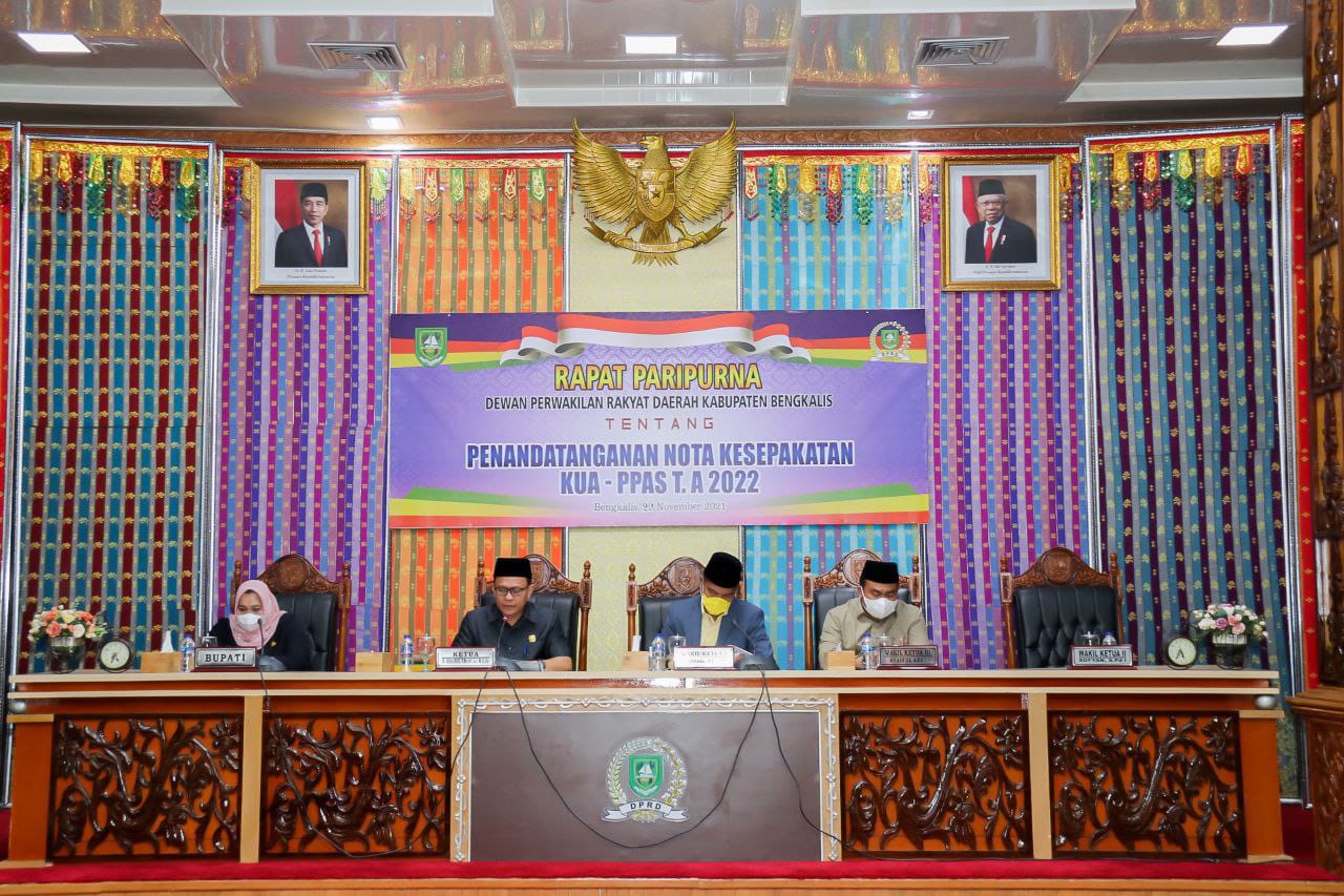 Penandatanganan antara Pemerintah Kabupaten Bengkalis dengan DPRD Bengkalis ini dilakukan dalam rapat paripurna, di Ruang Rapat DPRD Bengkalis, Senin, 22 November 2021.