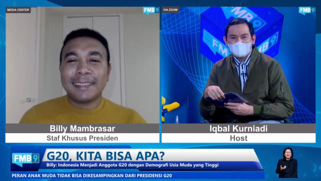 JAKARTA, RANAHRIAU.COM- Presidensi G20 Indonesia menjadi momentum membuka mata dunia internasional bahwa sektor pemasaran barang dan jasa elektronik atau e-commerce ditanah air sangat potensial. Hal ini ditegaskan Staf Khusus Presiden RI Billy Mambrasar dalam diskusi virtual Forum Merdeka Barat 9 (FMB 9) bertajuk “G20, Kita Bisa Apa?”, Rabu 8 Desember 2021 di Jakarta.