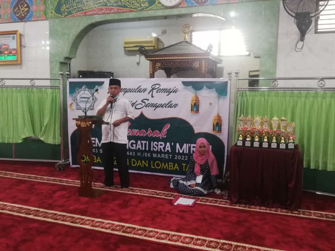 PEKANBARU, RANAHRIAU.COM- Dalam rangka menyemarakkan Peringatan Hari Besar Islam yakni Isra' Mi'raj Nabi Muhammad SAW, Kumpulan Remaja Masjid Senapelan taja kegiatan Lomba Adzan dan Tahfidz untuk Tingkat Remaja dan anak-anak yang diselenggarakan di Masjid Senapelan, Kelurahan Padang Terubuk Pekanbaru, Ahad (06/03/2022).