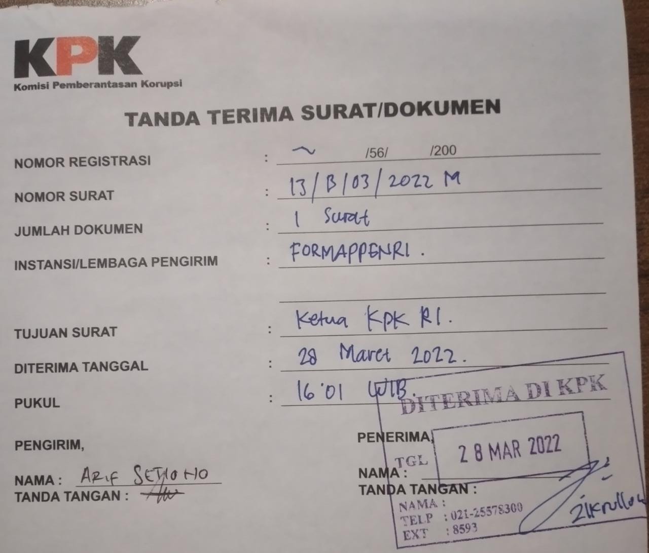 Penyampaian orasi yang sedang berlangsung pukul 15,35 WIB ini, dari pihak KPK mengundang Arif setiono selaku Ketua Formappenri dan di dampingi Muhammad Aamin selaku korlap, di kawal pihak aparat keamanan untuk masuk dan menyampaikan aspirasi dan tuntutannya di dalam gedung KPK.