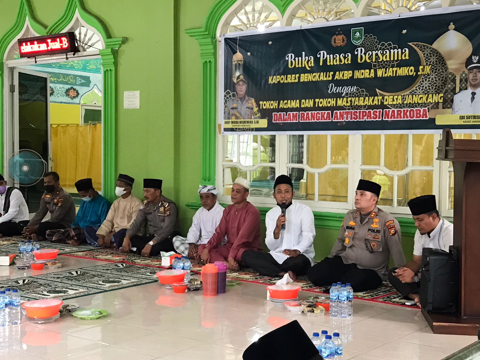 Sebelum berbuka puasa, Kapolres Bengkalis AKBP Indra Wijatmiko menghimbau dan menyampaikan, tentang bahaya narkoba. Kepada orangtua untuk menjaga anak anak dari pengaruh baik penggunaan narkoba maupun peredaran narkoba.
