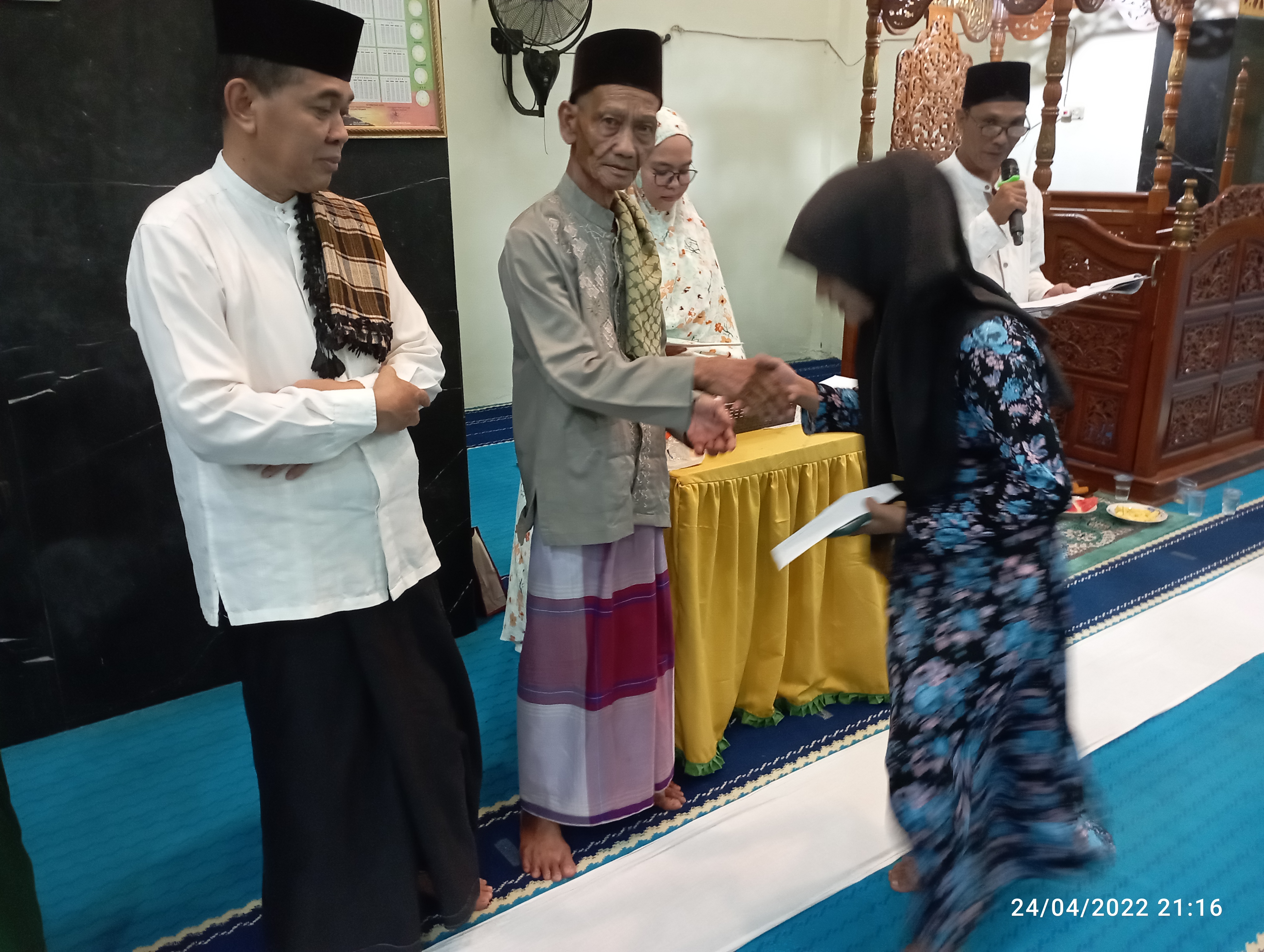 Foto: Ketua Masjid Al-Mubarak Yung Syarif Berikan Santunan Kepada Anak Yatim