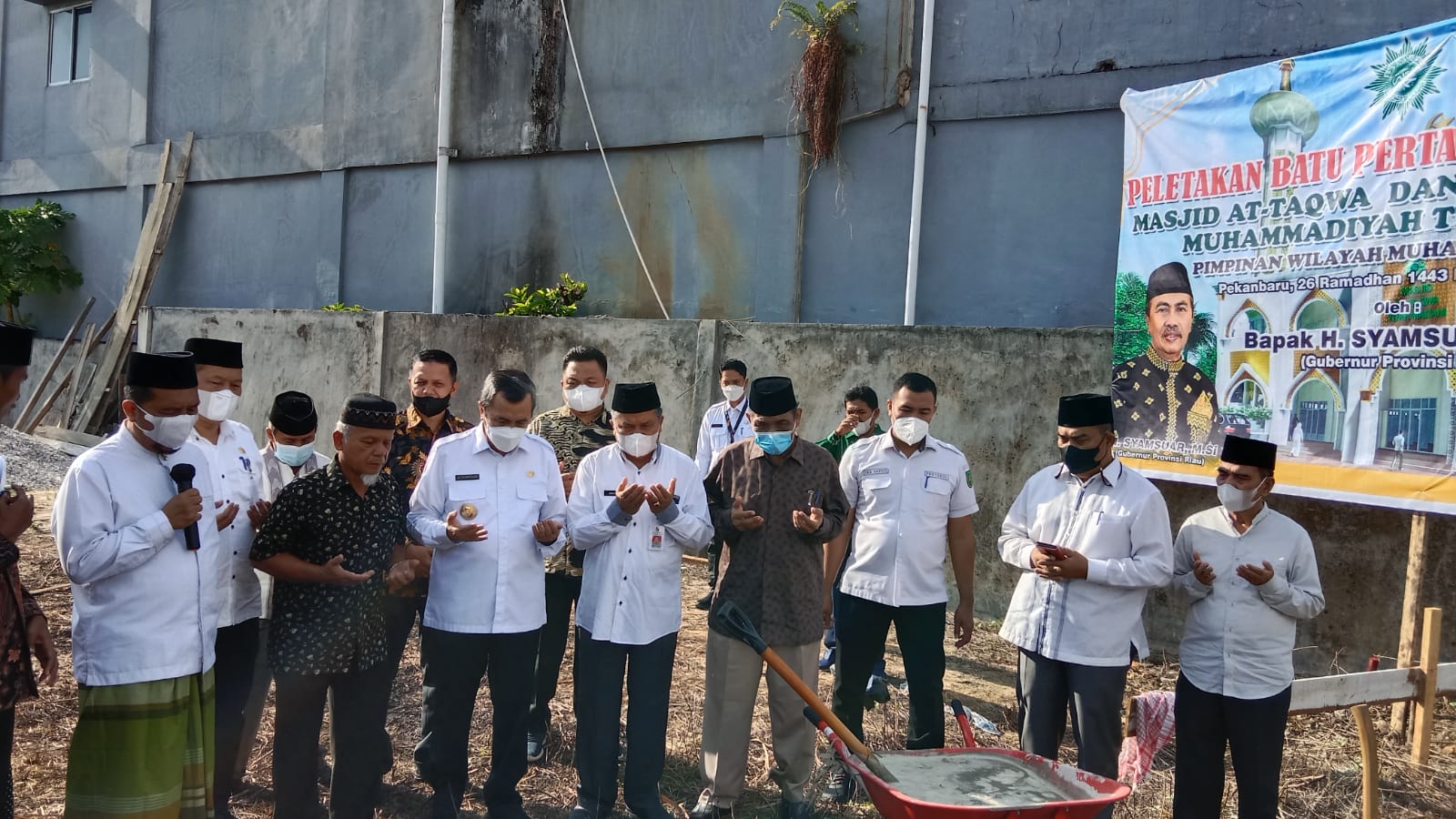 PEKANBARU, RANAHRIAU.COM- Gubernur Riau, H. Syamsuar, M.Si lakukan Peletakan Pertama Pembangunan Masjid bertempat di Jl Garuda Sakti, Pekanbaru, Rabu (27/04/2022).