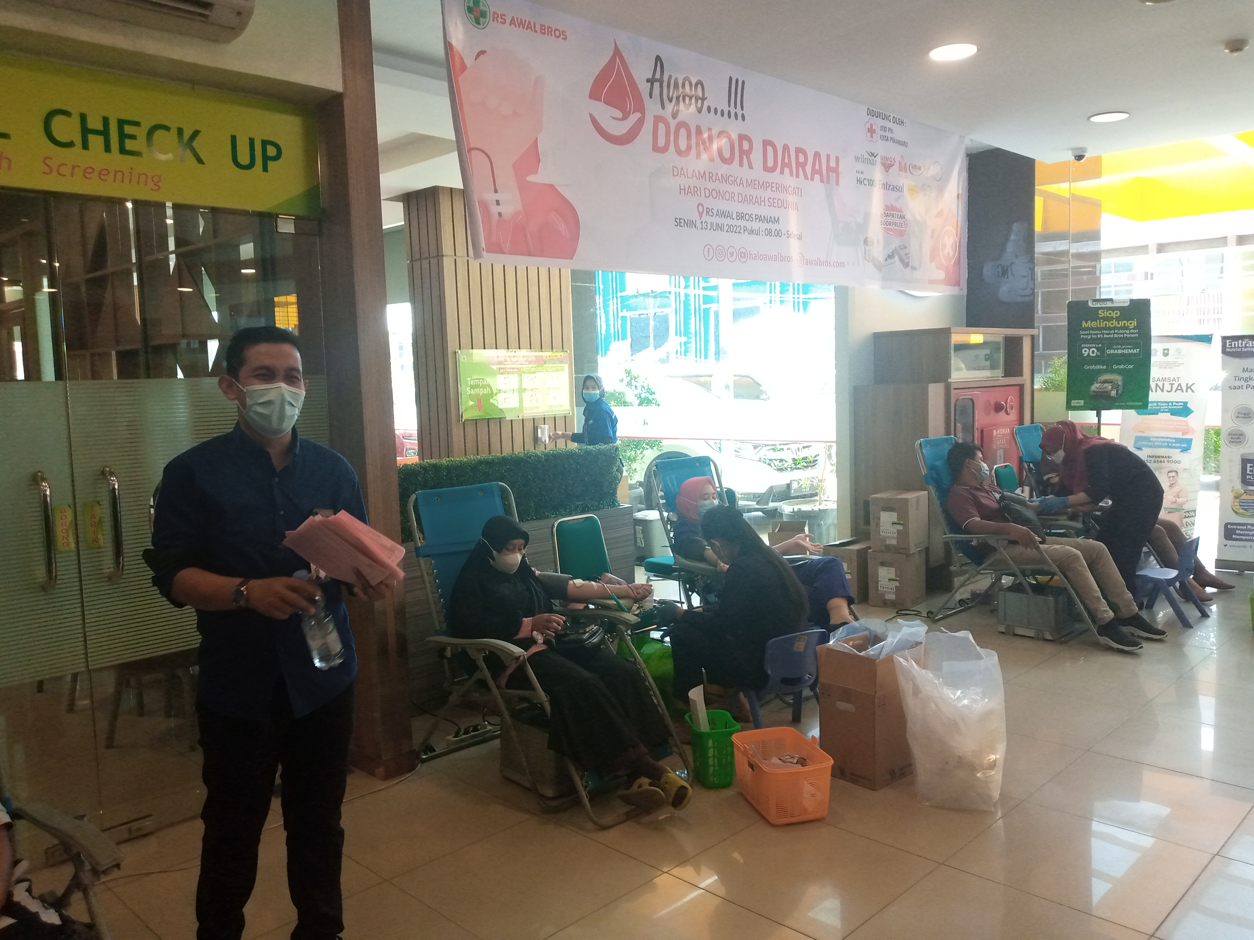 PEKANBARU, RANAHRIAU.COM- Ratusan masyarakat Kota Pekanbaru yang terdiri dari berbagai latar belakang, komunitas dan para tenaga kesehatan terlihat sangat antusias saat mengikuti kegiatan donor darah yang diselenggarakan oleh Rumah Sakit Awal Bros Panam Pekanbaru, hal ini disampaikan oleh Fitra selaku Humas dari RS Awal Bros Panam Pekanbaru, Senin (13/06/2022).