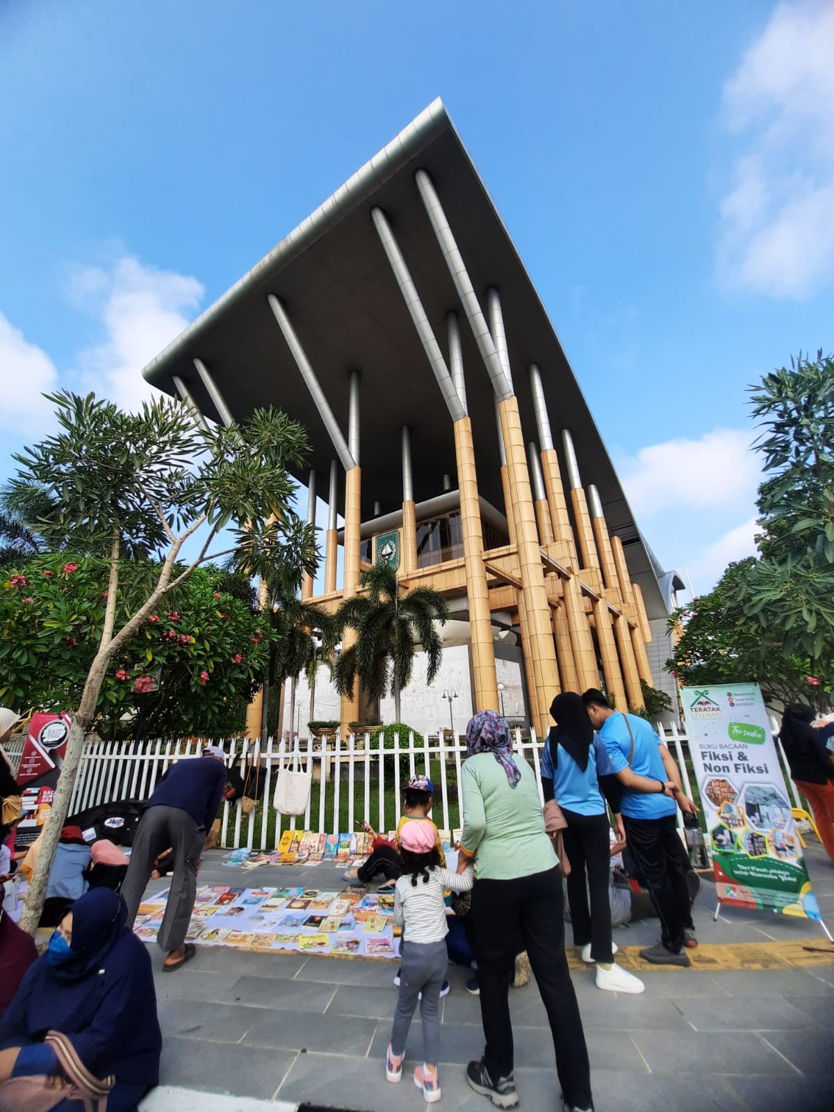 PEKANBARU, RANAHRIAU.COM- Forum TBM Riau menggelar Lapak Baca gratis di Area Car Free Day (CFD). Kegiatan lapak baca gratis berkolaborasi dengan Dinas Perpustakaan dan Arsip provinsi Riau dengan didukung oleh RB Nasyiah, RB Salsabila, Teratak Literasi dan KGN yang digelar didepan perpustakaan Soeman HS, Ahad (18/06/2022).