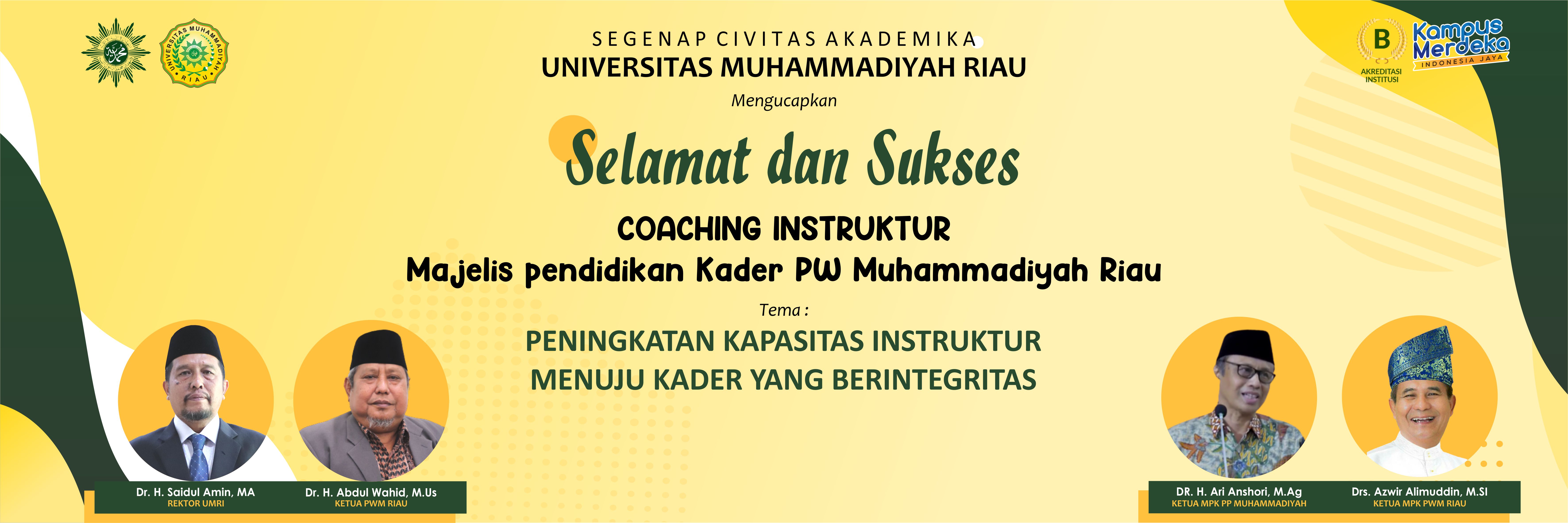 Dalam Agenda Coaching Instruktur yang akan diikuti oleh sekitar 30-an peserta dari Universitas Muhammadiyah Riau dan perwakilan Ortom Muhammadiyah ini akan diisi oleh pemateri yang mumpuni dibidangnya diantaranya DR. Ari Anshori, DR. Untung Cahyono, serta Muhammad Aziz M.Cs yang berbicara tentang Materi perkaderan mulai dari Konsep Dasar Perkaderan Muhammadiyah sampai Teaching Plan dan Micro Teaching.