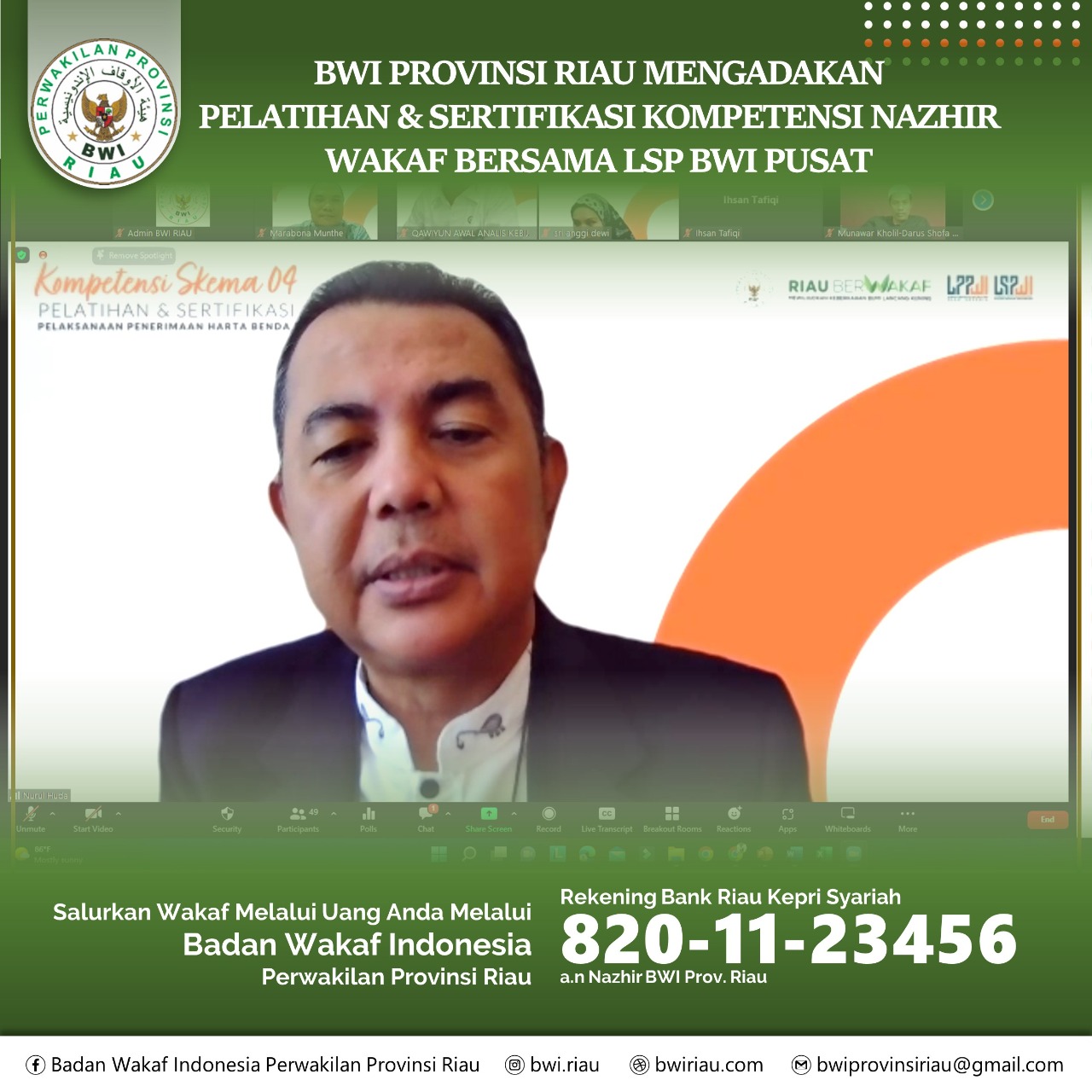 Badan Wakaf Indonesia Riau gelar Pelatihan dan Sertifikasi Kompetensi untuk Nazhir secara daring