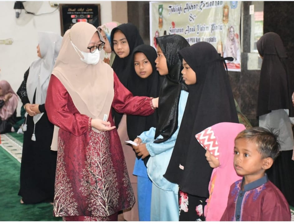 BENGKALIS, RANAHRIAU.COM - Tim Penggerak Pemberdayaan dan Kesejahteraan Keluarga (TP PKK) Kabupaten Bengkalis menggelar Tabligh Akbar sekaligus berbagi kebahagiaan dengan anak yatim dan kaum dhuafa di Masjid Nurul Huda, Kelurahan Rimba Sekampung, Sabtu (8/4/2023).