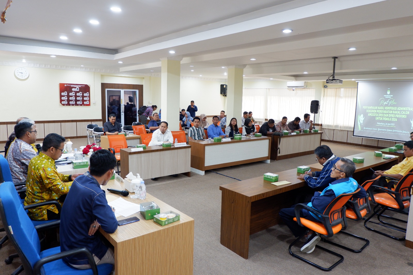 PEKANBARU, RANAHRIAU.COM- KPU Riau serahkan hasil verifikasi administrasi dokumen syarat bakal calon anggota DPD dan DPRD Provinsi Riau untuk Pemilu 2024, sekaligus FGD Draft PKPU Pemungutan dan Penghitungan Suara Pemilu 2024 di Ruangan Pertemuan KPU Riau, Sabtu (24/06/2023).