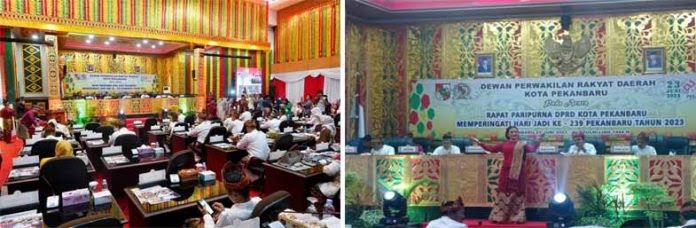 Perayaan hari jadi ke-239 Kota Pekanbaru tahun 2023 ini, diawali dengan rapat paripurna istimewa DPRD di Ruang Rapat Balai Payung Sekaki.”Tahniah Kota Pekanbaru, semoga kota ini bisa terus maju dan berkembang,”harap Syamsuar, dalam sambutannya.