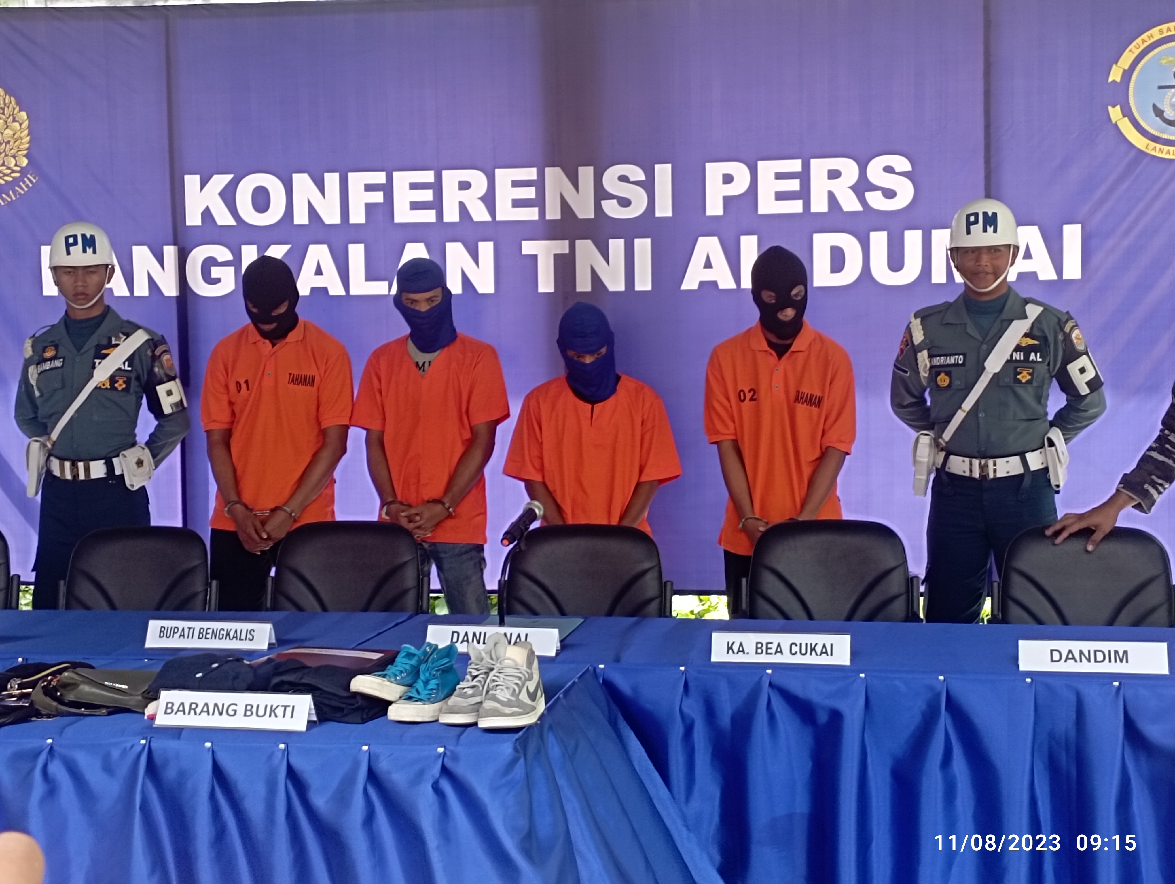 Dalam konferensi pers tersebut, langsung disampaikan oleh Danlanal Dumai Karyadi Bangun, yang dihadiri Bupati Bengkalis Kasmarni diwakili Wabup H Bagus Santoso, Kepala Bea dan Cukai Agoes Widodo, Waka Polres Bengkalis, Kompol Farris Nur Sanjaya, Dandim Bengkalis diwakili, Ba Pok Tuud Peltu Dedek Irwanto, Komandan Posal Bengkalis, Letda Laut (E) Nur Johan.
