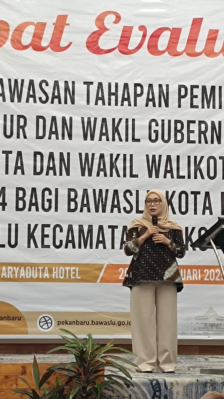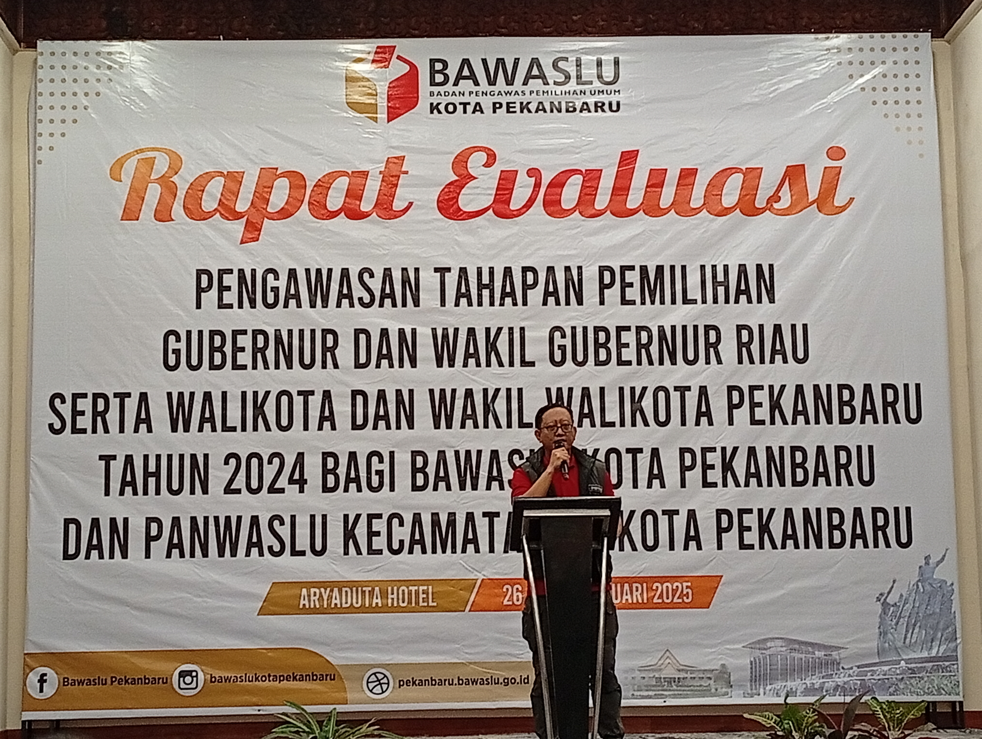 Serta Walikota dan Wakil Walikota Pekanbaru tahun 2024 bagi Bawaslu kota Pekanbaru dan Panwaslu Kecamatan se-Pekanbaru yang digelar di Aryaduta Hotel Pekanbaru, Ahad (26/01/2025).