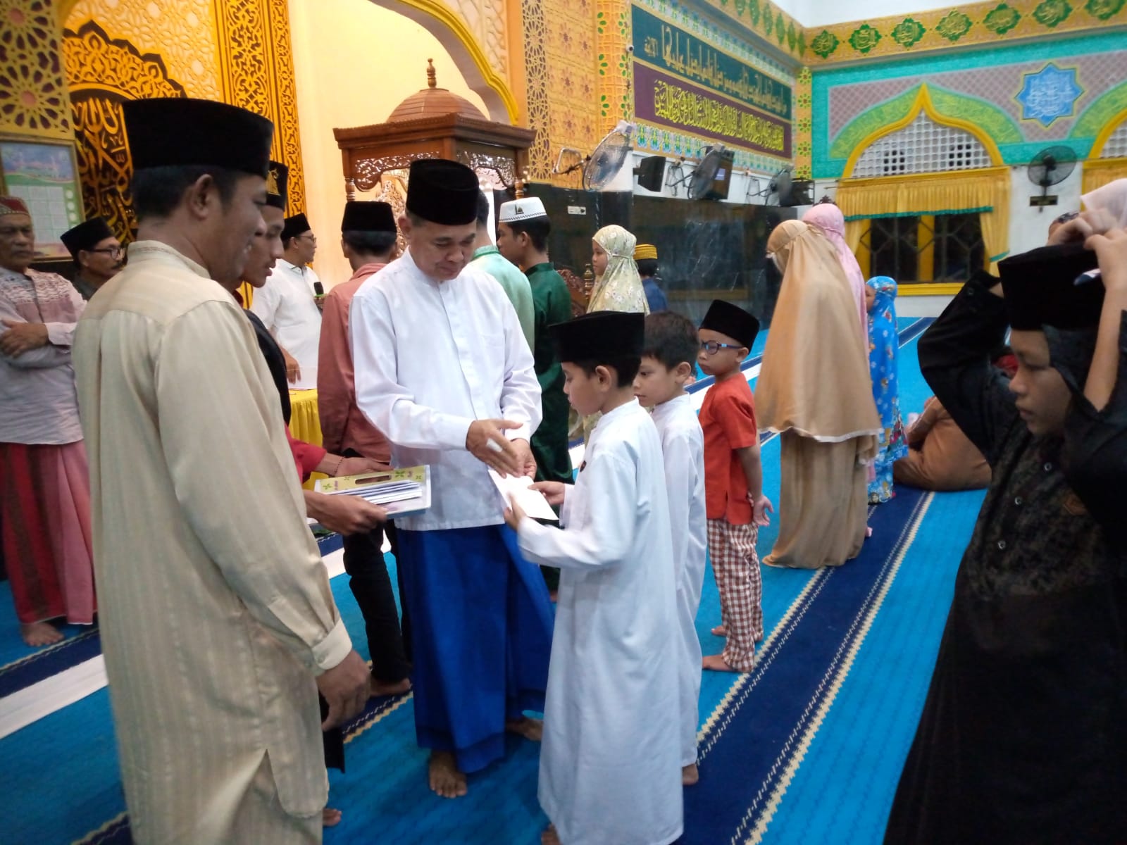 BENGKALIS, RANAHRIAU.COM - Tepatnya pada malam 23 ramadhan 1446 H/2025 M, pengurus Masjid Al-Mubarak Desa Senggoro Kecamatan Bengkalis, Kabupaten Bengkalis melaksanakan penyerahan bantuan santunan kepada 48 anak yatim dari 7 RT (Rukun Tetangga), seusai sholat Tarawih dan Witir, Sabtu (22/3/2025) malam.