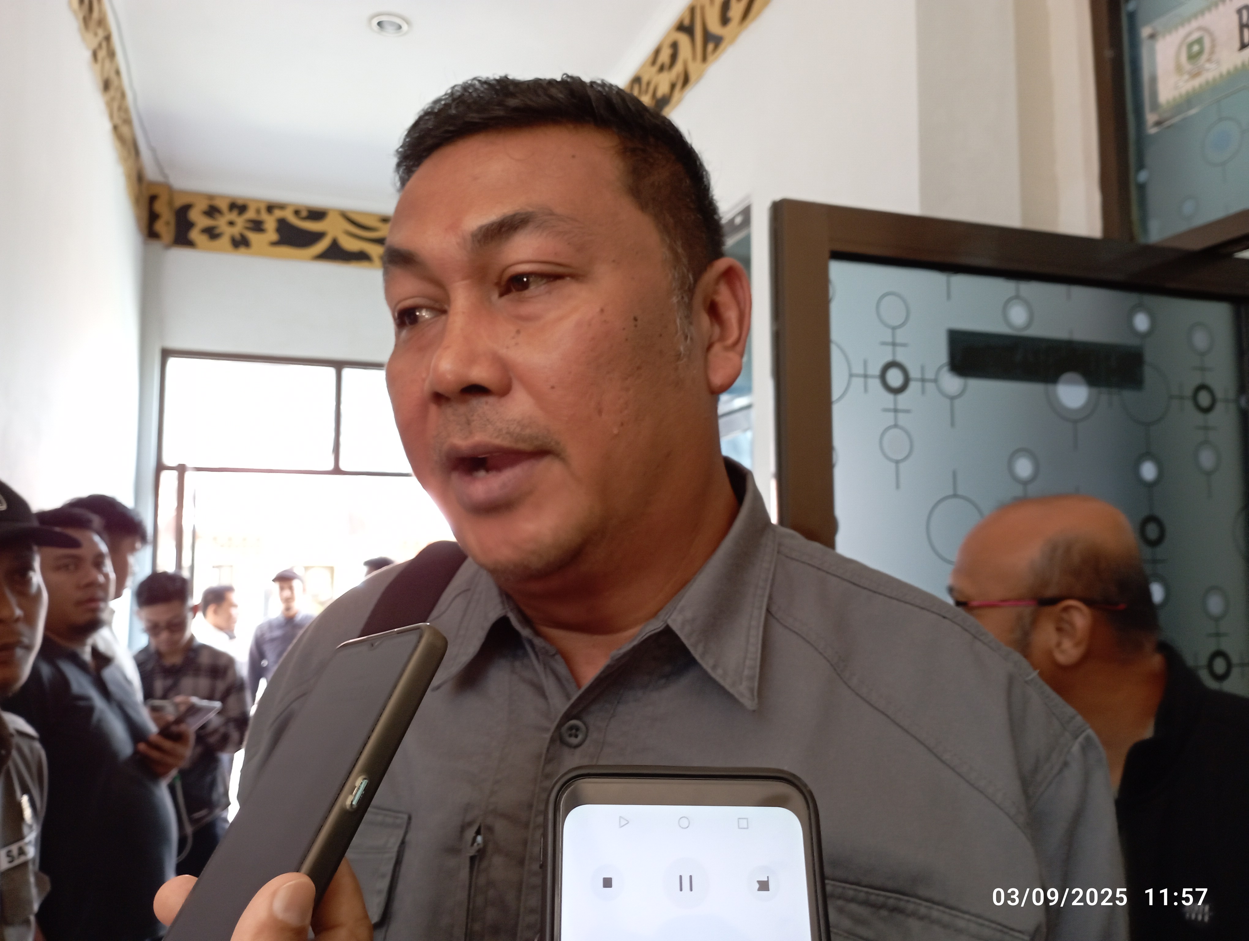 Foto: Kadishub Bengkalis Adi Pranoto Saat di Konfirmasi Wartawan Usai Berdialog Diruang Banmus Bersama Masa Aksi Mahasiswa