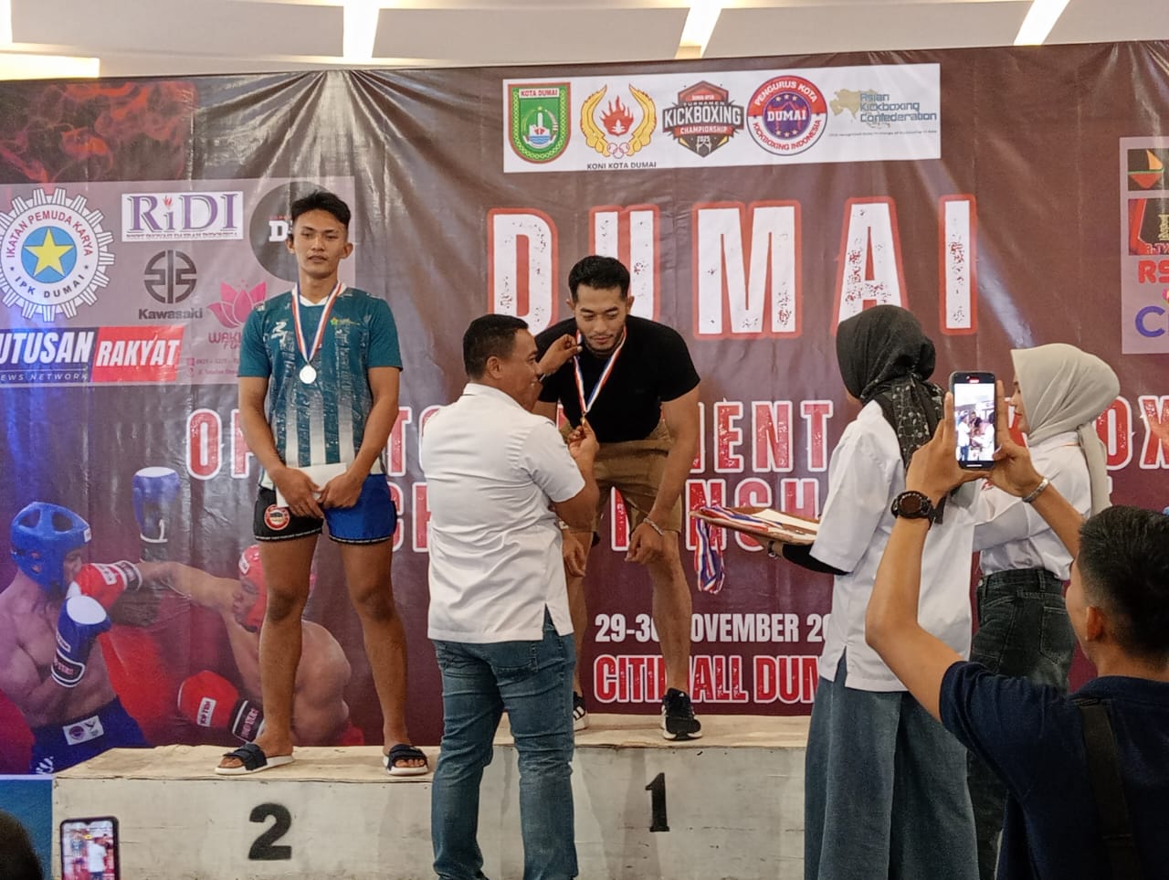 Pertama, Dimas Nopriansyah Putra kelas 51 Kg Full Contact Pelajar dari SMAN 3 Bengkalis. Kedua, M.Rafi Iskandar 63 kg Full Contact, dan ketiga Raihan Ibnu Putra kelas 51 Kg Low Kick.