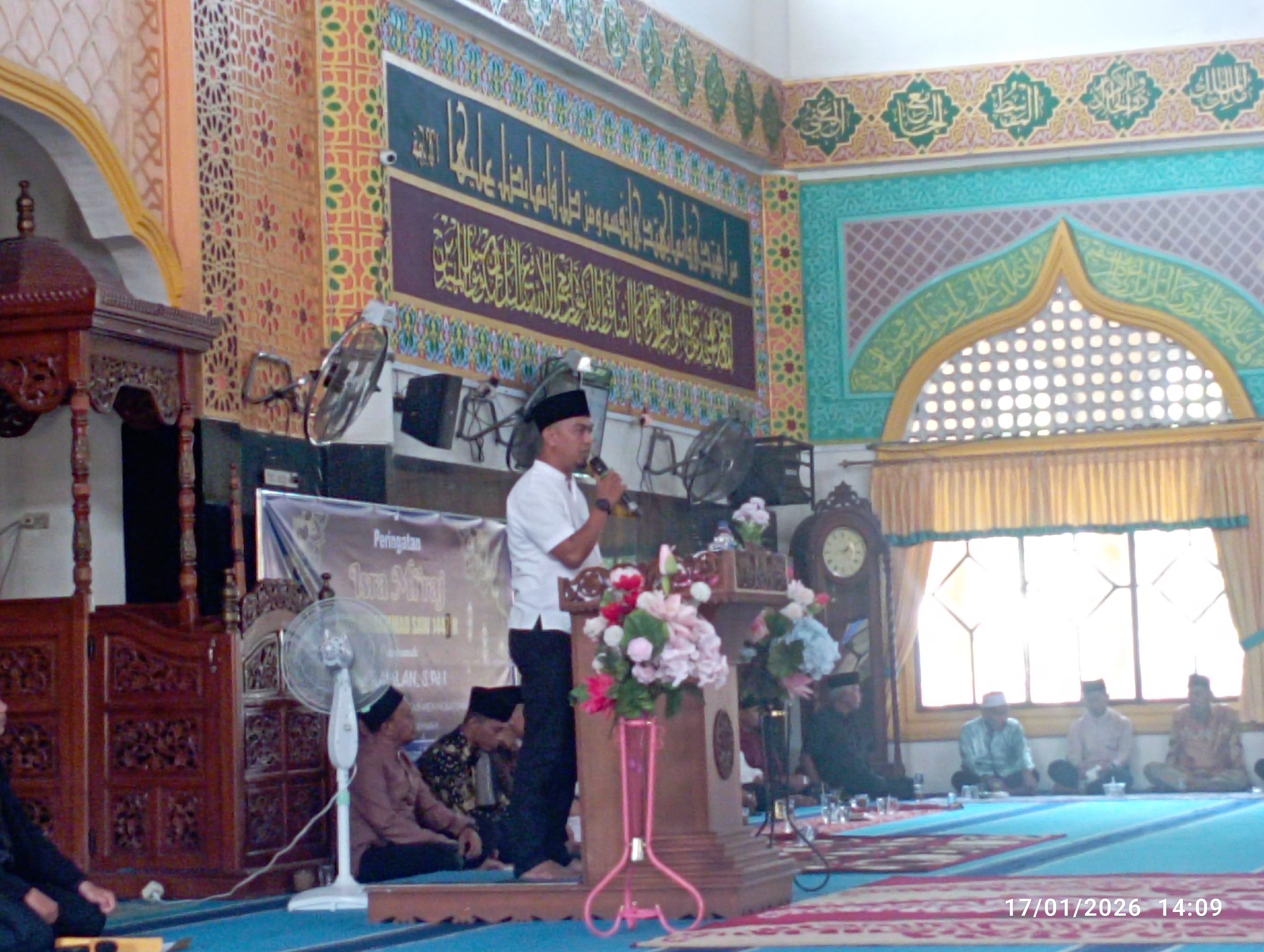 BENGKALIS, RANAHRIAU.COM - Masjid Al-Mubarak Desa Senggoro, Kecamatan Bengkalis menggelar peringatan Isra' Mi'raj Nabi Muhammad SAW 1447 H, pada Sabtu (17/1/2026).