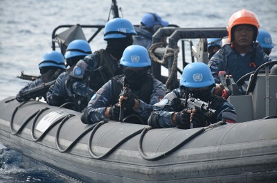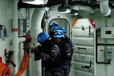 Ini merupakan simulasi latihan antara tim VBSS KRI Bung Tomo-357 dan BRS UNIAO F-45 (Brazil) yang digelar saat melaksanakan operasi pengamanan di laut Mediterania guna meningkatkan kemampuan tiap-tiap personel tim pemeriksa serta untuk menjaga sinergitas antara unsur-unsur Maritime Task Force (MTF) UNIFIL. Latihan ini berjalan dengan sukses dan aman yang diakhiri dengan foto bersama. (Fes/Rls).