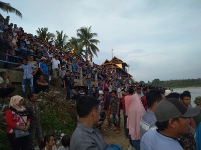 Kuansing, RanahRiau.com- Dentuman meriam diiringi sorak sorai Puluhan Ribu penonton dihari ketiga yang merupakan hari terakhir pacu jalur, mewarnai kepadatan disepanjang arena pacu jalur rayon IV topian datuak simambang rajo nan putiah desa pulau komang Sentajo, kecamatan sentajo raya Kabupaten Kuantan Singingi sabtu (29/7/2017)