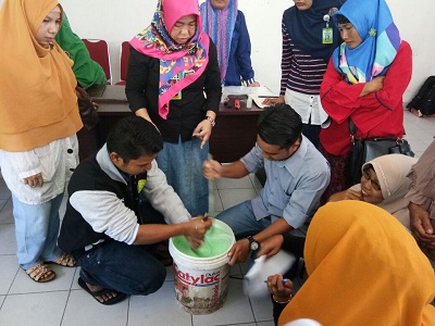 Selain memberikan training dengan lisan, Kata Anjas, Peserta yang hadir diajak juga untuk mendemonstrasikan atau praktek langsung pembuatan sabun cair tersebut.
