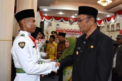 Dimana sebanyak 31 orang Pasukan Pengibar Bendera Merah Putih tersebut dikukuhkan di Aula Bupati Kampar, minggu malam.