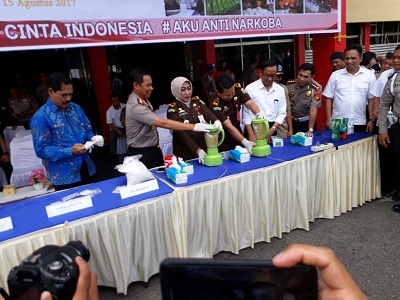 Barang Bukti Pil ekstacy, Happy Five dan Shabu-shabu tersebut dimusnahkan dengan cara diblender dan dilarutkan dengan air, sedangkan Barang Bukti jenis Daun Ganja Kering dimusnahkan dengan cara dibakar.