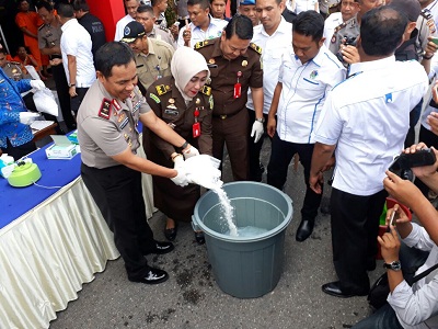 Kemudian dimusnahkan juga Barang Bukti Narkoba yang merupakan Barang Temuan Dit Res Narkoba Polda Riau sejak Tahun 2011 s/d 2017 berupa Narkotika jenis shabu-shabu seberat 246,37 gr, 64 butir pil ekstacy dan 60 butir Happy Five.