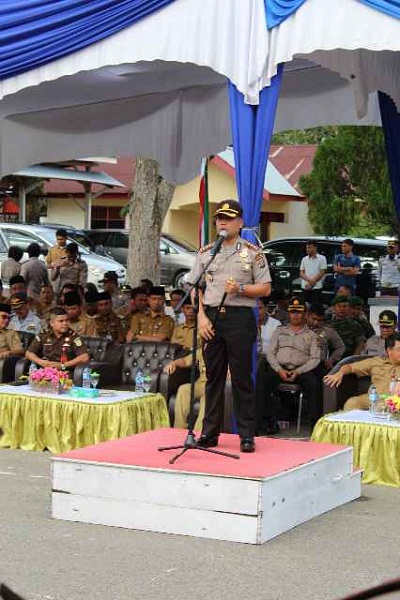 Kuansing, RanahRiau.com- Kapolres Kuantan Singingi AKBP Dasuki Herlambang sik MH Gelar Apel Pasukan pengamanan pacu jalur tradisional Kabupaten kuantan Singingi bertempat di Taman Jalur Depan Polsek Kuantan Tengah yang dipimpin langsung oleh wakil bupati Kuantan Singingi H.HALIM senin (21/8/2017).