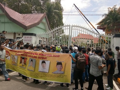 "Kami Mempertanyakan, beranikah DPRD Riau memberikan informasi terbuka kepada masyarakat tentang APBD Riau dan Bantuan keuangan," Tegas Orator Aksi Erlangga.